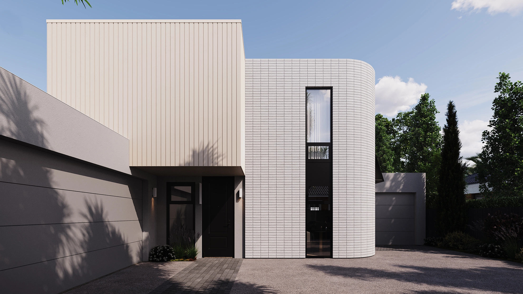 Hills Road explores the potential of urban infill housing with elegance and restraint. Each home is unique yet shares a cohesive identity through the use of curved brickwork, timber detailing, and carefully composed elevations. The spatial planning prioritises liveability — with generous open-plan living areas, integrated outdoor space, and a thoughtful material palette that reflects both warmth and permanence.